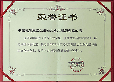 中國(guó)電力網(wǎng)訊 (通訊員 趙勇) 日前,2023中國(guó)文化管理協(xié)會(huì)企業(yè)黨建與企業(yè)文化年會(huì)在杭州舉辦。中國(guó)電建集團(tuán)江西省水電工程局有限公司(以下簡(jiǎn)稱“江西水電”)申報(bào)的《傳承江水文化 助推企業(yè)高質(zhì)量發(fā)展》案例獲評(píng)中國(guó)文化管理協(xié)會(huì)“文化強(qiáng)企優(yōu)秀案例一等獎(jiǎng)”,申報(bào)的《企業(yè)文化手冊(cè)》獲評(píng)“最美品牌之聲”銀獎(jiǎng)代言作品。這是繼獲評(píng)全國(guó)工程建設(shè)行業(yè)企業(yè)文化最佳案例之后,又一次獲獎(jiǎng)。