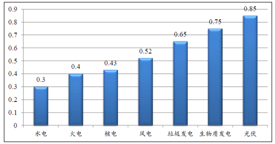 各種發(fā)電方式上網(wǎng)電價(元/kwh)
