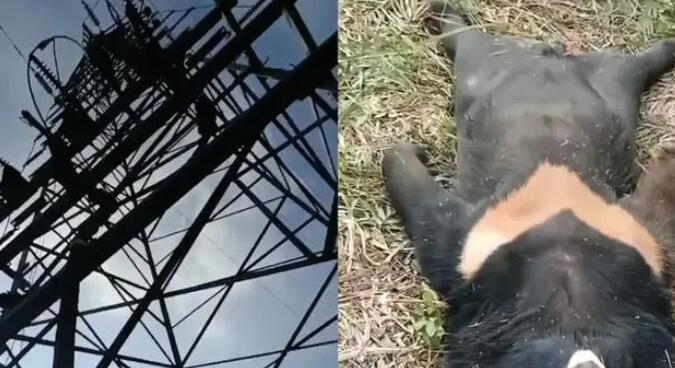 廣西欽州黑熊爬上高壓電塔觸電死亡 無人員傷亡