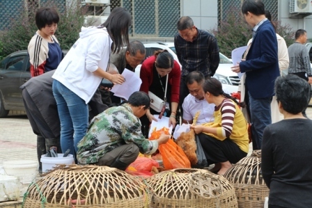 “這袋香米我要了,不要和我搶”,香米種植戶盧大哥的一袋袋大米還未從車(chē)上卸完,就被大家搶著訂購(gòu)一空;“這筐香姜我要了,大爺快幫我裝袋稱(chēng)重吧”,賣(mài)姜的陳大爺忙得不亦樂(lè)乎;“這只雞公好,我要了”···上午九時(shí),隨著該公司活動(dòng)指揮人員宣布現(xiàn)場(chǎng)購(gòu)銷(xiāo)活動(dòng)正式開(kāi)始,大家爭(zhēng)先恐后的圍到早早看中的農(nóng)產(chǎn)品攤前開(kāi)始“搶購(gòu)”,根本等不及農(nóng)戶們好好宣傳自己家的產(chǎn)品,一樣樣、一袋袋農(nóng)產(chǎn)品被熱情的采購(gòu)者們“收入囊中”。現(xiàn)場(chǎng)采購(gòu)活動(dòng)開(kāi)始一個(gè)小時(shí)不到,農(nóng)戶們帶來(lái)的10多樣價(jià)值約3萬(wàn)元的農(nóng)產(chǎn)品就銷(xiāo)售一空,同時(shí),還接受了預(yù)購(gòu)訂單5000余元。