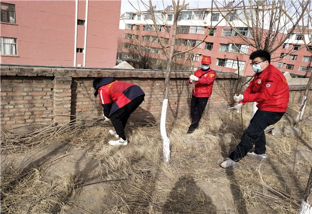 在前期的摸排中分局志愿者發(fā)現(xiàn),小區(qū)周?chē)恍┙ㄖ?、枯?shù)干無(wú)任何覆蓋大面積堆放,不僅占道嚴(yán)重,影響群眾通行;并且四周空曠,極易產(chǎn)生揚(yáng)塵污染,給小區(qū)居民生活帶來(lái)諸多不便。活動(dòng)中,分局志愿者對(duì)小區(qū)周?chē)目葜埬具M(jìn)行撿拾,枯枝中的垃圾單獨(dú)拾出,并集中進(jìn)行整理銷(xiāo)毀。之后又走進(jìn)小區(qū)內(nèi),對(duì)小區(qū)綠化帶內(nèi)進(jìn)行了全面清理,打掃了車(chē)棚衛(wèi)生死角,并將居民隨意停放的自行車(chē)、電動(dòng)車(chē)擺放整齊,對(duì)小區(qū)顯著位置張貼的小廣告進(jìn)行了清理。分局的志愿者們互相配合,紛紛發(fā)揚(yáng)不怕臟、不怕累的精神,分工明確,組織有序,現(xiàn)場(chǎng)呈現(xiàn)一片熱火朝天的勞動(dòng)景象,每個(gè)人臉上都洋溢著勞動(dòng)的喜悅。經(jīng)過(guò)大家的努力,小區(qū)的環(huán)境衛(wèi)生有了明顯改善,受到了小區(qū)居民的好評(píng)。今日還有分局職工參與了我市“我?guī)湍?rdquo;學(xué)雷鋒志愿服務(wù)集中示范活動(dòng)暨“萬(wàn)名機(jī)關(guān)干部下社區(qū)”志愿服務(wù)活動(dòng)啟動(dòng)儀式,在這樣一個(gè)特殊的日子里與更多的志愿者通過(guò)自己的行動(dòng)助力志愿服務(wù)工作。