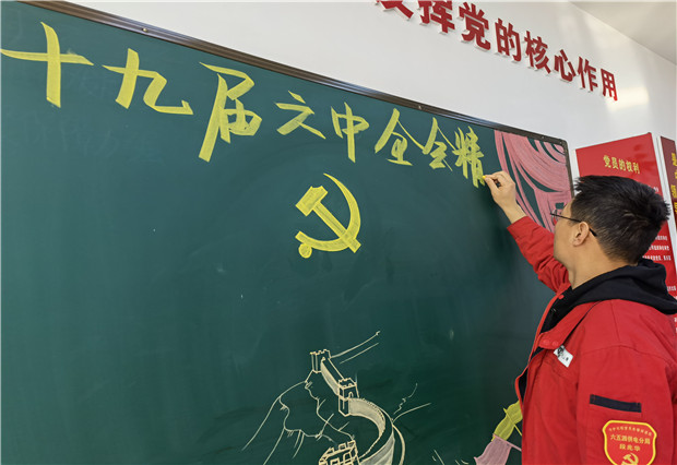 “線下”單位的青年黨員書寫黑板報,為了讓單位全體職工更全面、更及時地了解會議精神,黨員將十九屆六中全會的會議重點內(nèi)容經(jīng)過精心設計、編排,搬到了單位的黑板上。正在黨員活動室閱讀黑板報的積極分子說:“這個板報對全會的內(nèi)容歸納清晰、通俗易懂,這樣的學習形式讓我好像一下回歸學生時代,很受大家的歡迎。”除此之外,六五四供電公司黨支部還組織黨員結合工作崗位深入交流研討、撰寫心得體會,在學習中談認識體會、話發(fā)展變化,深化思想啟迪、促進共同提高。
