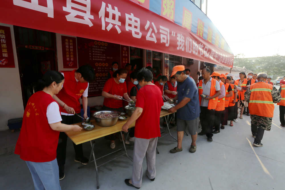 活動當天,羅山縣供電公司團青志愿者們提前來到羅山縣愛心粥屋,為愛心粥屋奉獻愛心物資及資金,積極開展志愿服務(wù)活動,協(xié)助粥屋工作人員為環(huán)衛(wèi)工人們準備小米粥、大米飯、各種小菜等早餐食物,依次引導(dǎo)環(huán)衛(wèi)工人們就坐、取餐。待用餐完畢后,該公司志愿者們及時清掃地面、整理桌椅、清洗碗筷等,并向愛心粥屋全員和前來用餐的環(huán)衛(wèi)工人送上端午佳節(jié)的問候和祝福。