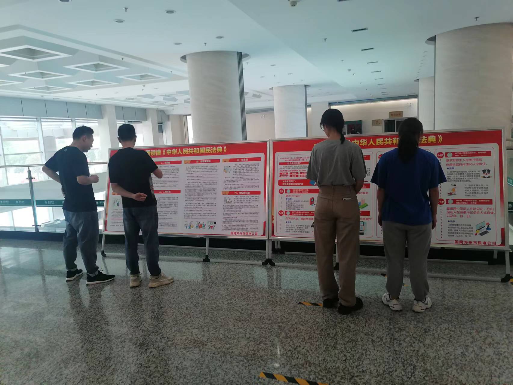該公司一是召開專題工作會議。召開2024年民法典宣傳工作專題會議,啟動部署民法典宣傳活動。將與專項(xiàng)工作密切相關(guān)的法律法規(guī)納入中心組學(xué)習(xí),全面宣傳習(xí)近平法治思想和民法典等相關(guān)法律法規(guī),公司領(lǐng)導(dǎo)班子帶頭學(xué)法、講法。二是營造濃厚學(xué)習(xí)氛圍。在公司各位置的電子屏播放民法典宣傳片,在人群密集的職工食堂、營業(yè)大廳等位置擺放民法典宣傳展板、彩頁,以圖文并茂的形式簡介民法典熱點(diǎn)問題,引導(dǎo)職工關(guān)注學(xué)習(xí)民法典,營造學(xué)法、用法、守法的良好氛圍。三是邀請律師以案說法。邀請律師以案說法,圍繞民法典及公司經(jīng)營管理中合同簽訂的法律風(fēng)險(xiǎn),對供用電合同知識、物權(quán)、私人所有權(quán)等內(nèi)容進(jìn)行了生動講解,幫助相關(guān)崗位職工加深對法律的認(rèn)識和理解。同時(shí)設(shè)立法律答疑熱線,共計(jì)向職工解答民法典中涉及生命健康、財(cái)產(chǎn)糾紛、婚姻家庭問題20余項(xiàng),引導(dǎo)職工辦事依法、遇事找法,推動形成解決問題用法、化解矛盾靠法的良好氛圍。