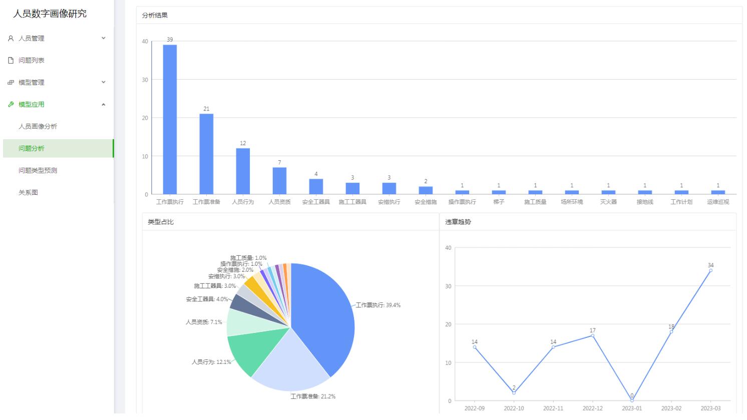 “人員數(shù)字畫像系統(tǒng)建模就是將作業(yè)人員信息的標(biāo)簽化,通過搭建智能計(jì)算評(píng)價(jià)系統(tǒng),自動(dòng)提取歷史違章數(shù)據(jù)進(jìn)行分析計(jì)算,能夠全面細(xì)致地展現(xiàn)作業(yè)人員的信息全貌,并提出針對(duì)性培訓(xùn)建議,還可以從違章單位、類別以及頻次等多維度以圖表展示數(shù)據(jù)分析結(jié)果,大大解放了以往人工歸類統(tǒng)計(jì)分析的勞動(dòng)力。”余姚市宏宇輸變電工程公司安監(jiān)部項(xiàng)目負(fù)責(zé)人介紹該系統(tǒng)時(shí)津津樂道。