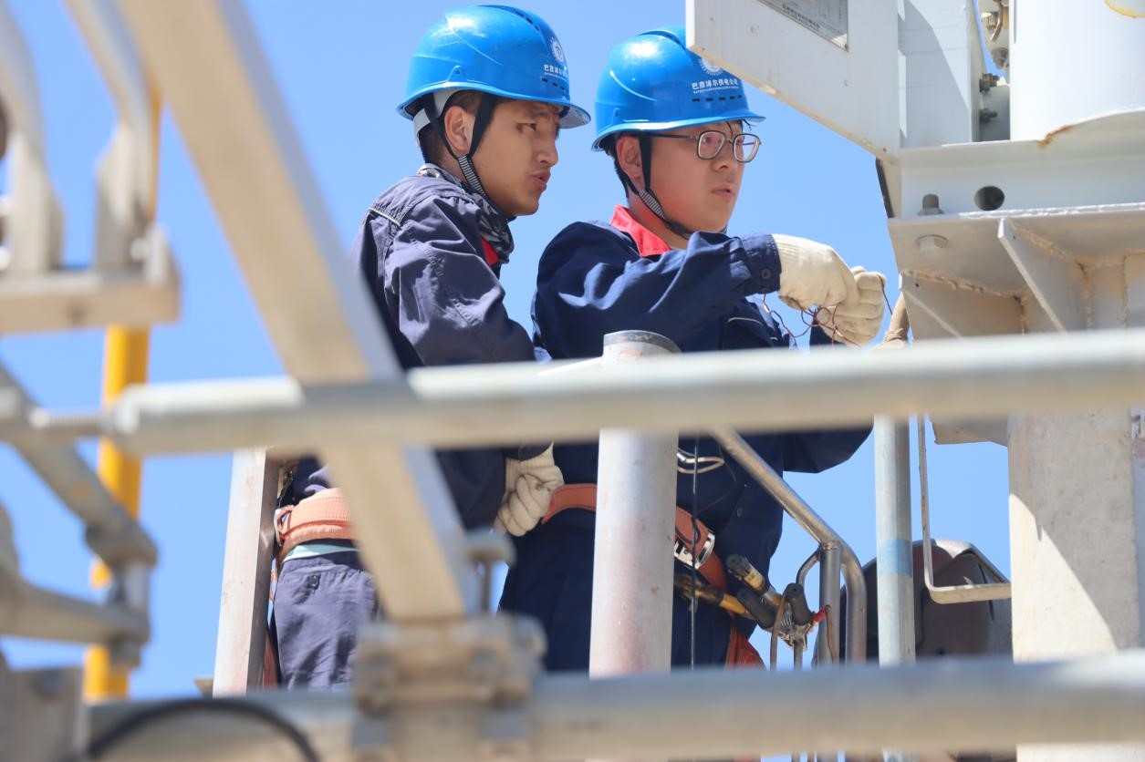 三盛公變電站是磴口縣最大的變電站,是磴口縣電力供應(yīng)的重要保障。高壓試驗(yàn)二班此次的檢修任務(wù)是252間隔的高壓試驗(yàn),需要到距地3m以上的電流互感器架構(gòu)旁進(jìn)行接線試驗(yàn)。按照工作安排,師傅帶領(lǐng)新員工登上了斗臂車,開始了“傳幫帶”教學(xué)。斗臂車的操作并不復(fù)雜,一共8個(gè)操控按鈕,一個(gè)油門,一個(gè)緊急停車按鈕。師傅邊說邊示范操作:“首先要看對(duì)方向,然后緩?fù)朴烷T,斗臂啟動(dòng)時(shí)要注意與周圍設(shè)備的距離,一定不能著急。”然后便讓新員工上手實(shí)踐一下,他在旁邊監(jiān)護(hù)。新員工上手后對(duì)于油門推進(jìn)把控不好,他又耐心地教導(dǎo):“油門起步一定要慢,不然斗臂會(huì)抖得很厲害,等緩慢啟動(dòng)之后,斗臂就可以很穩(wěn)當(dāng)?shù)赝七M(jìn)了,別急慢慢來。”時(shí)近正午,雖然汗滴從安全帽沿不斷滑落,但是新員工耐心地聽著師傅的教導(dǎo)并操作,技能漸漸嫻熟。