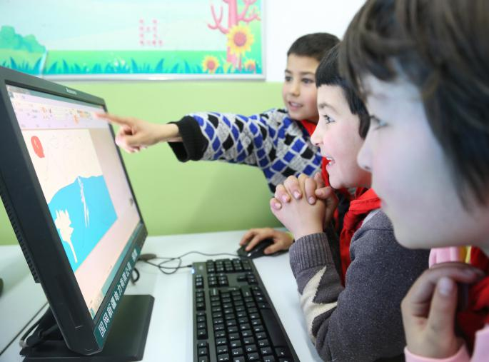 馬爾洋鄉(xiāng)中心小學(xué)的孩子們用國網(wǎng)新疆電力捐贈(zèng)的電腦學(xué)習(xí)繪畫