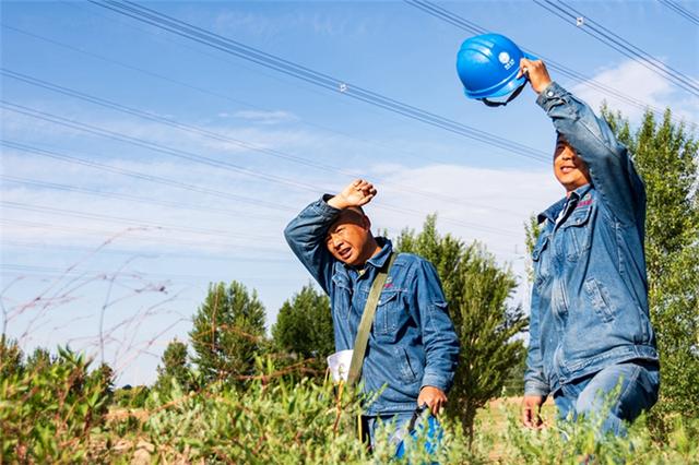 國網(wǎng)天津東麗供電公司員工高溫天氣下巡檢110千伏線路。