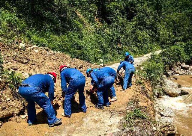國網(wǎng)陜西漢中供電公司員工清理滑坡點(diǎn),打通電力搶險(xiǎn)通道。