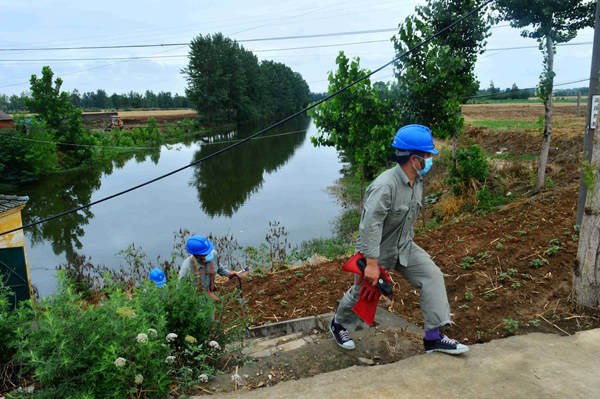 “陳書記,昨天下雨無法施工,我們現(xiàn)在在陳廟一級站,準備開展專變表箱表計和互感器安裝工作,請許可斷開專變跌落保險。”6月10日上午,國網(wǎng)湖北老河口市供電公司薛集供電所營銷班長李永久和同事站在薛集鎮(zhèn)陳廟村一級提灌泵站旁,撥通了陳廟村書記陳豐功的電話。