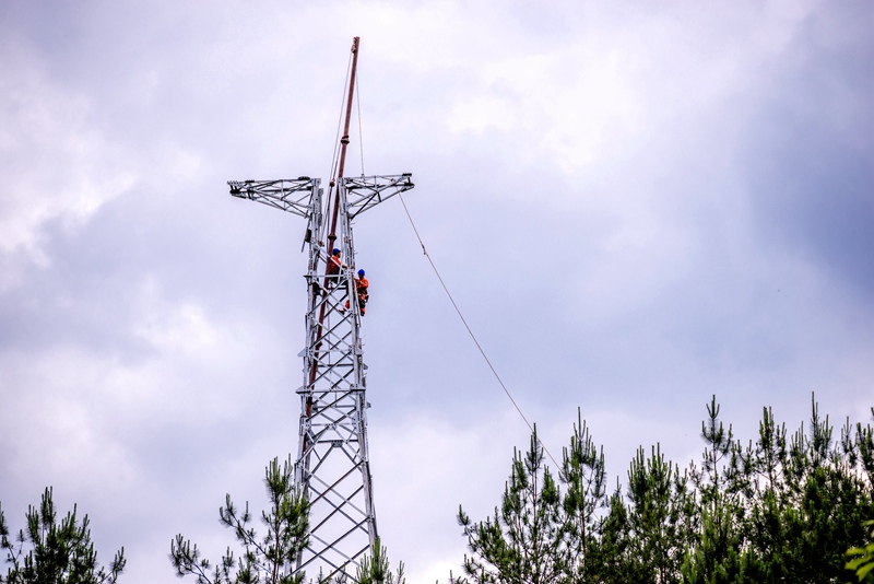 中國電力網(wǎng)訊   6月10日,室外氣溫高達(dá)28攝氏度,在四川省巴中市通江縣陳河鎮(zhèn)下江口村10社,國網(wǎng)通江縣供電公司施工人員有序開展涪陽變電站一河壩1井線路15號鐵塔組立工作。據(jù)了解,國網(wǎng)四川省巴中市通江縣供電公司積極服務(wù)地方經(jīng)濟(jì)發(fā)展,開辟供電服務(wù)綠色通道,從報裝申請、供電方案確定等方面提供優(yōu)質(zhì)高效的“一條龍”辦電服務(wù),為重點項目建設(shè)提供用電保障。程聰攝