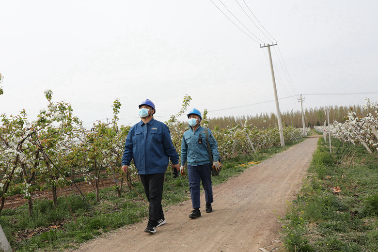 又是一年春草綠,朵朵梨花別樣鮮。遠(yuǎn)遠(yuǎn)望去,兩個“國網(wǎng)綠”穿梭在白色的花海中,描繪出一幅幅電力足、產(chǎn)業(yè)興、農(nóng)戶豐的美好花園。