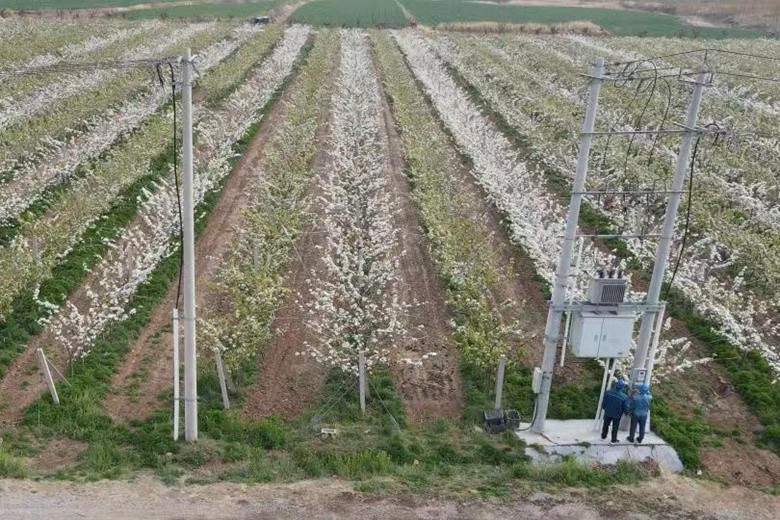 梨園美景如畫,引來無數(shù)游客流連忘返;秋季梨子成熟期,梨園采摘、訂單上門更是讓鄉(xiāng)親們鼓起了腰包。該特色產(chǎn)業(yè)發(fā)展的背后,離不開充足的電力保障,為保障梨園用上放心電,國網(wǎng)諸城市供電公司為其安裝了2臺總?cè)萘?00千伏安的變壓器,并將1500米10千伏線路架設(shè)到種植園區(qū),為園區(qū)配套機(jī)井排灌、民宿旅游提供堅強(qiáng)電力支撐。