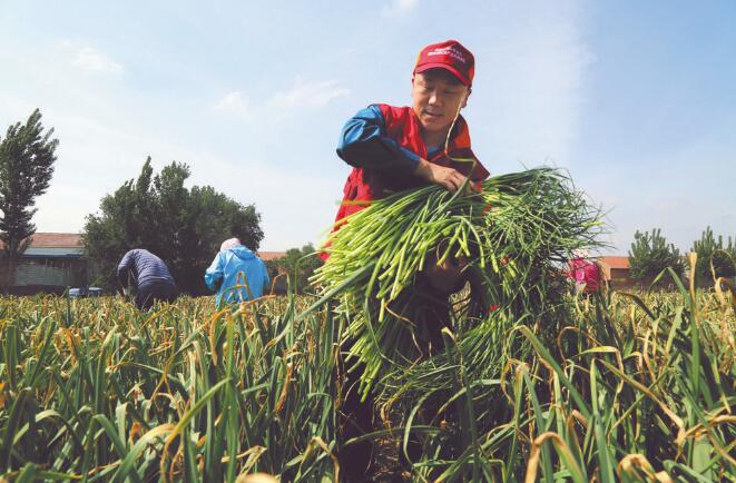 2017年年初,白橋鎮(zhèn)引入“龍頭企業(yè)+基地+合作社+農(nóng)戶”的發(fā)展模式。大蒜深加工龍頭企業(yè)與村里的合作社、大蒜種植大戶簽訂協(xié)議,保價收購大蒜,并將大蒜加工成價值更高、便于運輸和儲存的產(chǎn)品,讓當(dāng)?shù)胤N植戶增收。