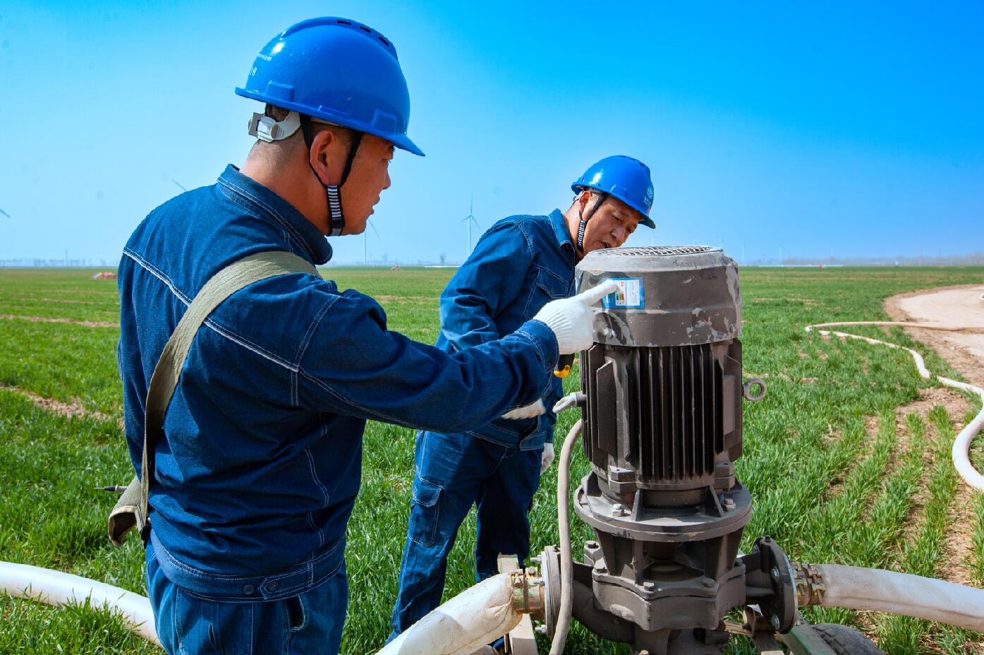 春撫萬物,水潤“糧倉”。在“豫北糧倉”滑縣麥田里,噴灌機正在努力工作,源源不斷地將清水撒向青翠的麥苗,陽光照射下水霧七彩斑斕,一副中原糧倉春灌生產(chǎn)的絕美畫卷。在這幅畫卷中,電力工作人員正在開展春灌保供電服務。