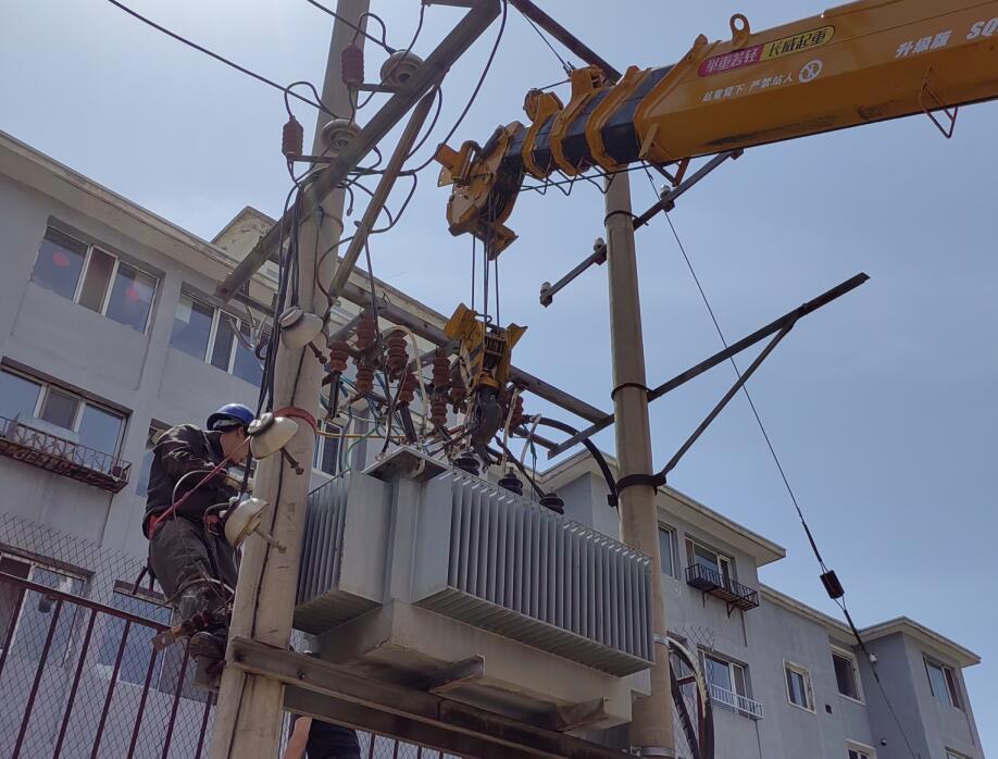 中國(guó)電力網(wǎng)訊(通訊員 李欣)“向右面一點(diǎn),往下放,好……”。5月8日內(nèi)蒙古電力(集團(tuán))有限責(zé)任公司呼和浩特供電公司賽罕分公司的工作人員對(duì)10kV泰安變9613滿東線干休所民政局小區(qū)更換變壓器,以確保居民日常生活可靠用電。