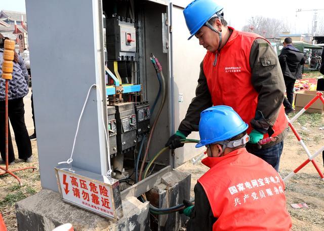 國(guó)網(wǎng)寶豐縣供電公司工作人員為馬街書會(huì)主會(huì)場(chǎng)架設(shè)臨時(shí)電源