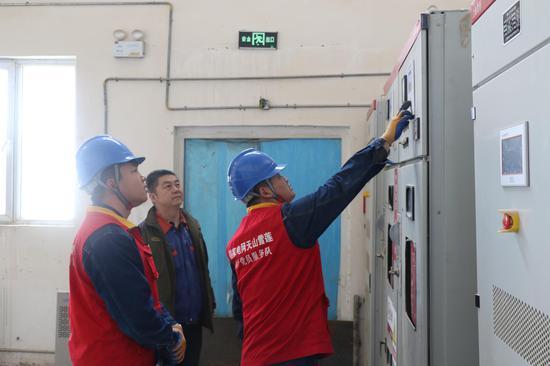 2月27日,國網(wǎng)阿克蘇市供電公司紡織城供電所黨員服務(wù)隊(duì)龔浩、梁昆對阿克蘇標(biāo)信纖維有限公司開展節(jié)后用電檢查。邸敏 攝