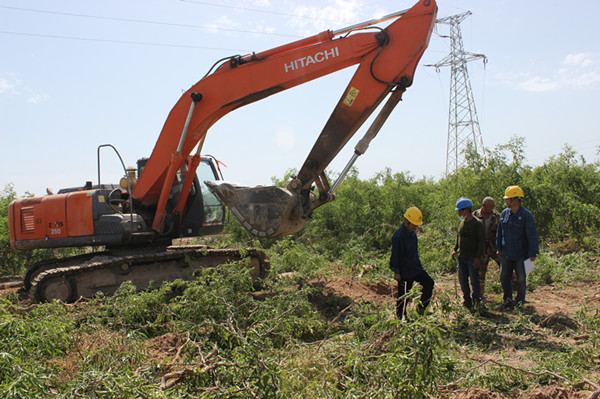 荒地所抓住工程項(xiàng)目施工中的重點(diǎn)難點(diǎn)工作開展克難攻堅(jiān),定出時(shí)間段、工作完成目標(biāo)清單、施工方案和考核辦法,做到工程項(xiàng)目能快速推進(jìn)按時(shí)完成。在新建六團(tuán)110千伏雙城變電站至國(guó)網(wǎng)220千伏變電站110千伏輸電線路施工中,因所建基塔在溫宿縣克孜勒鎮(zhèn)境內(nèi)需要簽訂征地賠償19戶,所長(zhǎng)李建亞和公司項(xiàng)目部到當(dāng)?shù)囟啻握勁?,積極協(xié)調(diào),在“關(guān)于征收阿拉爾市“三區(qū)三州”農(nóng)網(wǎng)升級(jí)110kv變110kv線路改造項(xiàng)目用地土地及地上附著物的通告”的時(shí)間段內(nèi)對(duì)農(nóng)戶加緊測(cè)量劃定征地面積、果樹數(shù)量和賠償金額,開展簽訂一戶、開挖一戶、澆筑一戶、立塔一戶。