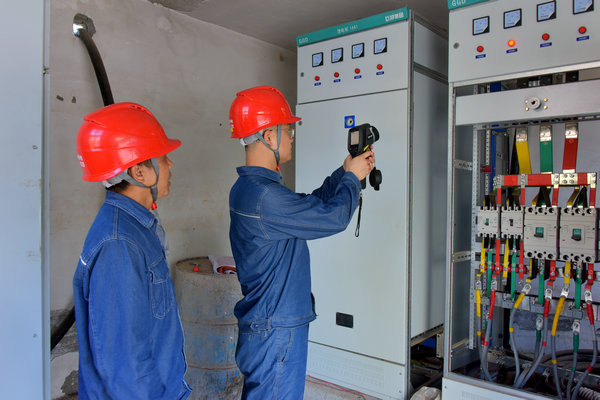 中國電力網(wǎng)訊 6月7日,高考的第一天。在樂安縣高考考點(diǎn)縣城第二中學(xué),國網(wǎng)樂安縣供電公司員工周平、鄧文濤正對設(shè)備進(jìn)行巡視測溫,確保高考現(xiàn)場可靠供電。