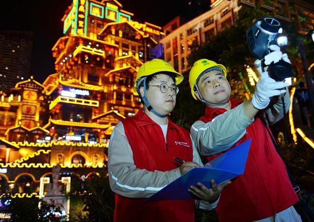 4月30日,在洪崖洞民俗風(fēng)貌區(qū),國(guó)家電網(wǎng)紅巖(市區(qū)渝中)共產(chǎn)黨員服務(wù)隊(duì)對(duì)景區(qū)供電線路及配套電力設(shè)施進(jìn)行夜巡。節(jié)日期間,他們不間斷在解放碑商圈、網(wǎng)紅景點(diǎn)以及重要保電場(chǎng)所開(kāi)展高精度紅外測(cè)溫及特殊巡視,密切監(jiān)測(cè)供電線路、設(shè)備運(yùn)行狀態(tài),指導(dǎo)商圈、景區(qū)商鋪規(guī)范用電,為游客營(yíng)造良好安全的游玩環(huán)境。