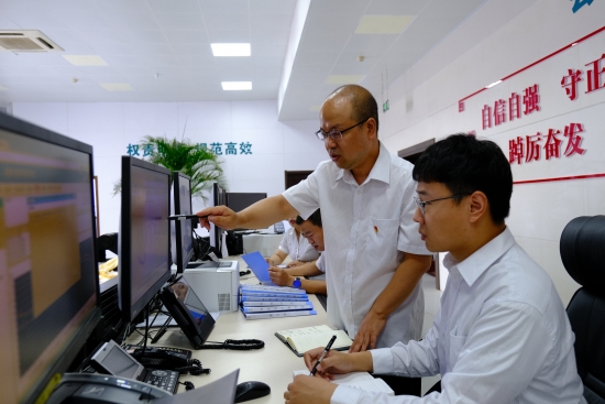 國網(wǎng)霸州供電公司工作人員密切關注電網(wǎng)運行。 趙亞彬攝