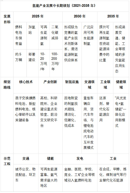 2022年3月23日的《氫能產(chǎn)業(yè)發(fā)展中長期規(guī)劃(2021-2035年)》,明確氫能的三大定位:未來國家能源體系的重要組成部分,用能終端實現(xiàn)綠色低碳轉(zhuǎn)型的重要載體”,戰(zhàn)略性新興產(chǎn)業(yè)和未來產(chǎn)業(yè)重點發(fā)展方向。除了《氫能產(chǎn)業(yè)中長期規(guī)劃(2021-2035年)》,幾乎是同一時間出臺的《十四五能源體系規(guī)劃》也指出了氫能行業(yè)規(guī)?;l(fā)展對全球能源體系的深刻變革的影響,其表述為:新型儲能和氫能有望規(guī)模化發(fā)展并帶動能源系統(tǒng)形態(tài)根本性變革,構(gòu)建新能源占比逐漸提高的新型電力系統(tǒng)蓄勢待發(fā),能源轉(zhuǎn)型技術(shù)路線和發(fā)展模式趨于多元化。