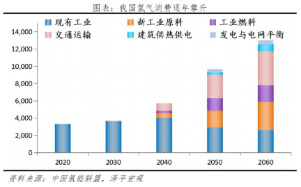 根據(jù)2021年1月8日召開的第三屆中國制氫與氫能源產(chǎn)業(yè)發(fā)展大會,2020年我國產(chǎn)氫量超過2500萬噸,基本全部用于工業(yè)過程領(lǐng)域;根據(jù)中國氫能聯(lián)盟的預(yù)計,2060年氫氣需求量達(dá)1.3億噸,其中交通運輸領(lǐng)域用氫4051萬噸(約總氫需求31%)。燃料電池作為氫能下游應(yīng)用的突破口,其大規(guī)模推廣成功與否對氫能產(chǎn)業(yè)鏈?zhǔn)欠衲艹晒~進(jìn)商業(yè)化階段具有重大影響。