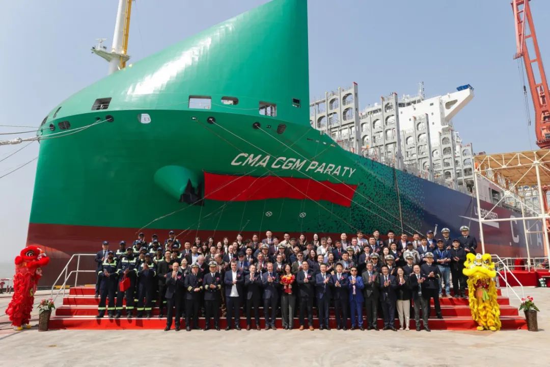 4月9日,由中國船舶集團(tuán)有限公司旗下滬東中華造船(集團(tuán))有限公司聯(lián)合中國船舶工業(yè)貿(mào)易有限公司為法國達(dá)飛集團(tuán)建造的13000TEU液化天然氣(LNG)雙燃料動力大型集裝箱船系列3號船“CMA CGM PARATY”號,在中船長興造船基地命名交付,南美洲東海岸航線又將新添一艘中國“智”造的大型雙燃料動力集裝箱船。