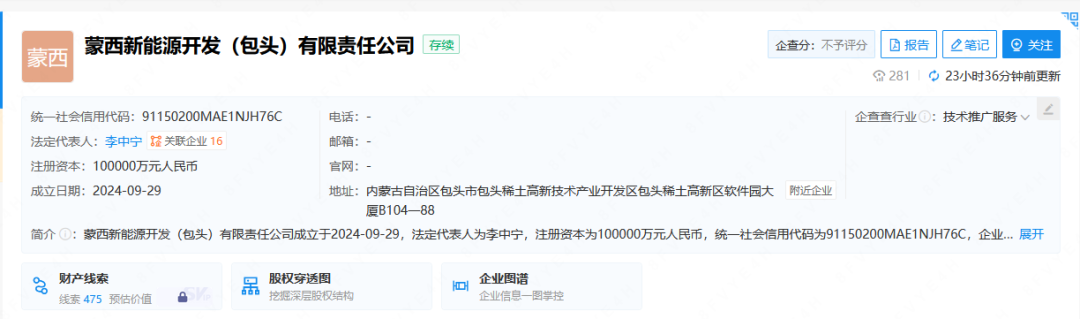 近日,蒙西新能源開(kāi)發(fā)(包頭)有限責(zé)任公司成立,法定代表人為李中寧,注冊(cè)資本10億元,經(jīng)營(yíng)范圍包含:站用加氫及儲(chǔ)氫設(shè)施銷售;高性能有色金屬及合金材料銷售;有色金屬合金制造等。