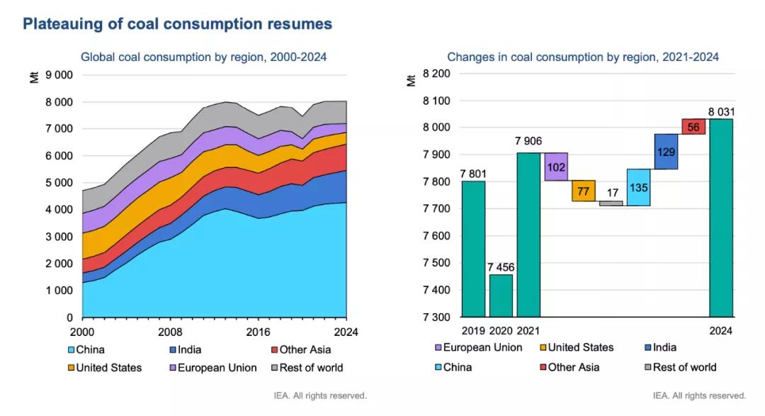 根據(jù)國際能源署(IEA)的最新報告,2021年全球煤炭發(fā)電量達到10350太瓦時(TWH),比上年增長9%,達到歷史新高。然而,煤炭在2021年全球發(fā)電量中所占的份額為31%,低于2007年36%的高點。在美國和歐盟,煤炭發(fā)電量預(yù)計在2021年增加近20%,但總量不會達到2019年的水平。相比之下,印度和中國的增長率分別為12%和9%,這兩個國家的煤炭發(fā)電量將達到創(chuàng)紀(jì)錄的水平??紤]到全球工業(yè)生產(chǎn)的反彈,全球煤炭需求總量預(yù)計將在2021年增長6%,接近2013年的創(chuàng)紀(jì)錄水平。