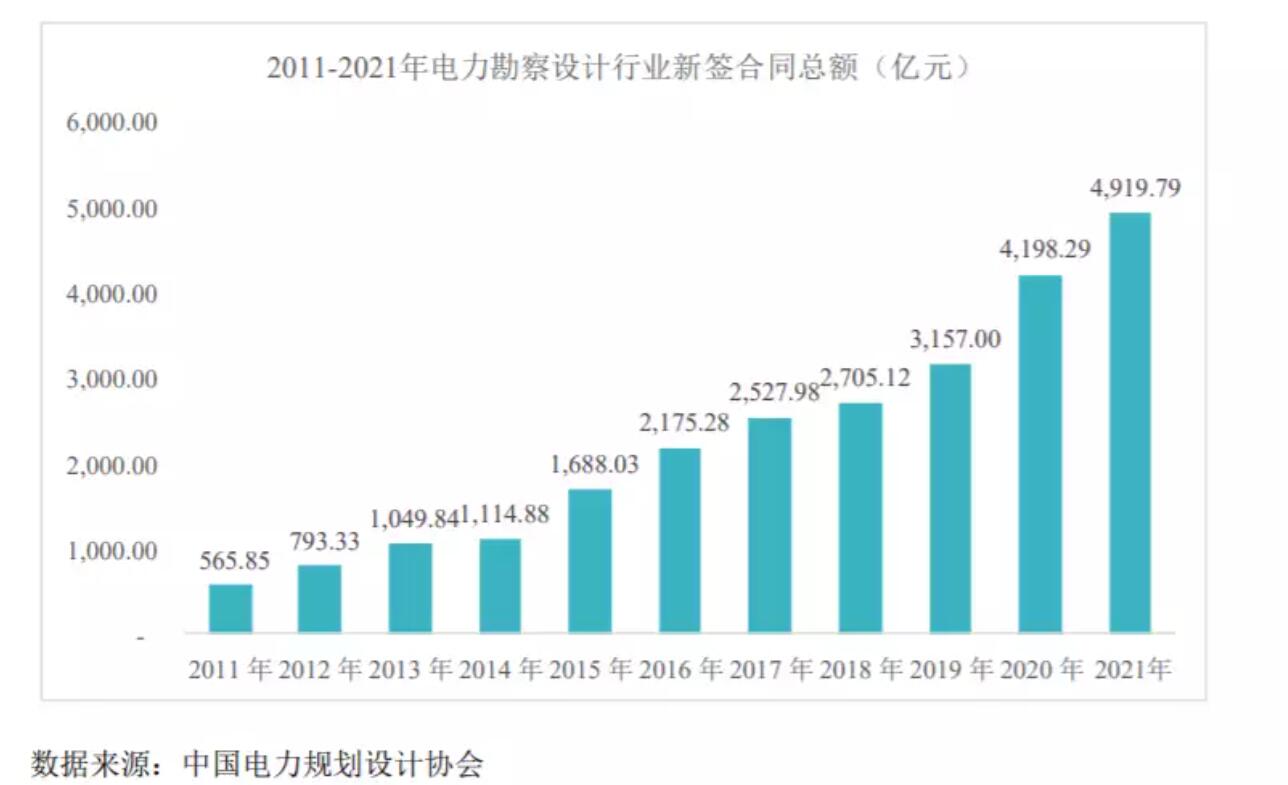 招股書顯示,根據(jù)中國電力規(guī)劃設計協(xié)會發(fā)布的電力勘察設計行業(yè)各年度統(tǒng)計數(shù)據(jù)顯示,2021年,電力勘察設計行業(yè)實現(xiàn)營業(yè)收入2,684.21億元,同比增長26.82%。