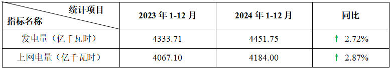 表3:2024年1-12月運行核電機組電力生產(chǎn)情況統(tǒng)計表