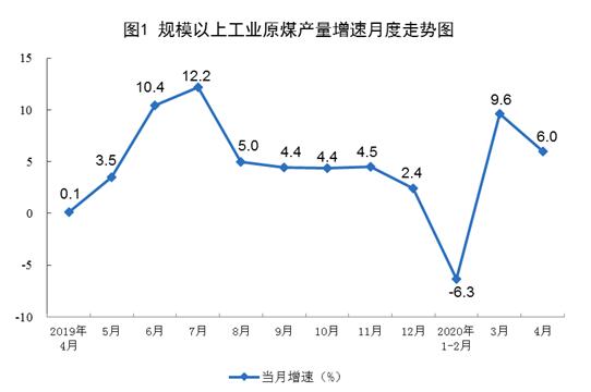 原煤生產(chǎn)增長較快。4月份,生產(chǎn)原煤3.2億噸,同比增長6.0%,增速比上月回落3.6個(gè)百分點(diǎn);日均產(chǎn)量1074萬噸,環(huán)比減少14萬噸。1—4月份,生產(chǎn)原煤11.5億噸,同比增長1.3%。