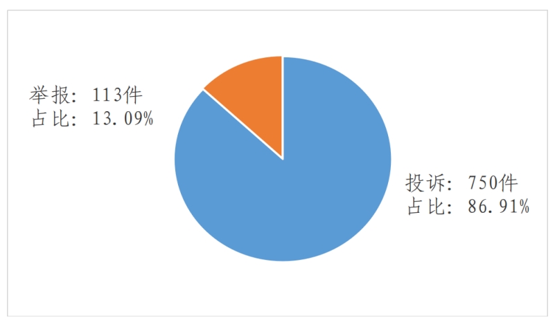 2023年9月,12398熱線共接收投訴舉報(bào)863件,環(huán)比下降25.99%、同比下降8.19%。其中:投訴750件,環(huán)比下降26.04%、同比下降11.35%;舉報(bào)113件,環(huán)比下降25.66%、同比增長(zhǎng)20.21%。
