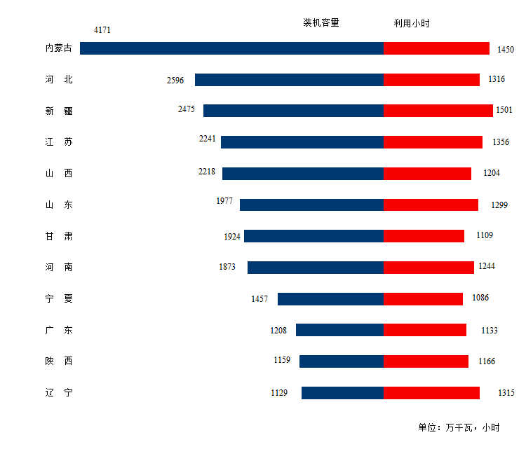 圖3 1-7月份風電裝機較多省份風電裝機容量和設(shè)備利用小時