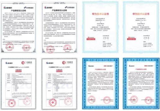 國產服務器(華為)、國產操作系統(tǒng)(中標麒麟)、國產數據庫(達夢)、國產中間件(中創(chuàng))認證書
