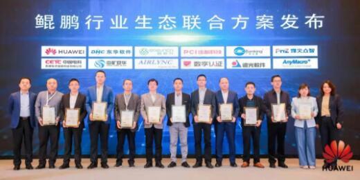 在活動現場,華為與多家合作伙伴共同發(fā)布了鯤鵬行業(yè)生態(tài)聯合方案,并授予合作伙伴技術認證證書。