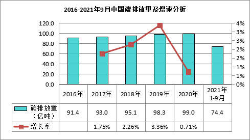 數(shù)據(jù)顯示,2020年我國碳排放總量約達99.0億噸,預計2021年我國碳排放總量將達101.09億噸。