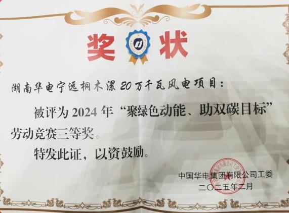 從《關(guān)于表彰2024年“聚綠色動(dòng)能、助雙碳目標(biāo)”打通“堵點(diǎn)”專項(xiàng)勞動(dòng)競(jìng)賽先進(jìn)集體和個(gè)人的決定》(中國(guó)華電工委〔2025〕37號(hào))中獲悉,公司所屬桐木漯20萬(wàn)千瓦風(fēng)電項(xiàng)目榮獲2024年集團(tuán)公司“聚綠色動(dòng)能、助雙碳目標(biāo)”勞動(dòng)競(jìng)賽三等獎(jiǎng)。新能湖南分公司工程建設(shè)部(物資部)主任賀亮平榮獲2024年集團(tuán)公司“聚綠色動(dòng)能、助雙碳目標(biāo)”勞動(dòng)競(jìng)賽打通“堵點(diǎn)”能手榮譽(yù)稱號(hào)。