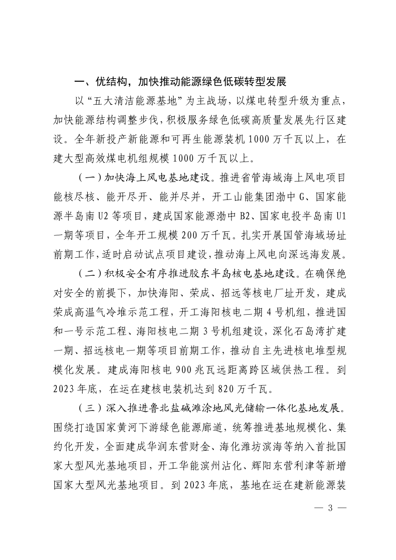 2月7日,山東省能源局印發(fā)2023年全省能源工作指導意見,其中氫能方面指出:創(chuàng)新打造風光氫儲一體化發(fā)展模式,依托魯北、膠東半島清潔能源基地和港口、高速沿線等分布式風光資源,探索推動煙臺海陽氫醇一體化、青島港氫動力港口等試點項目。創(chuàng)新推進新能源開發(fā)與裝備產(chǎn)業(yè)協(xié)同發(fā)展模式, 重點打造“國和”先進三代核能基地、國家電投黃河流域氫能產(chǎn)業(yè)基地,聚力構筑煙臺蓬萊、東營經(jīng)開區(qū)、威海乳山等海上風電 裝備制造聚集區(qū),風機主機年產(chǎn)能達到500臺套。