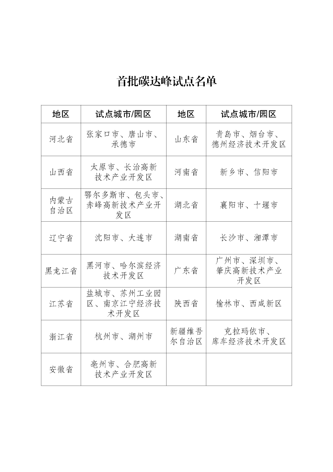 國家發(fā)展改革委辦公廳關于印發(fā)首批碳達峰試點名單的通知