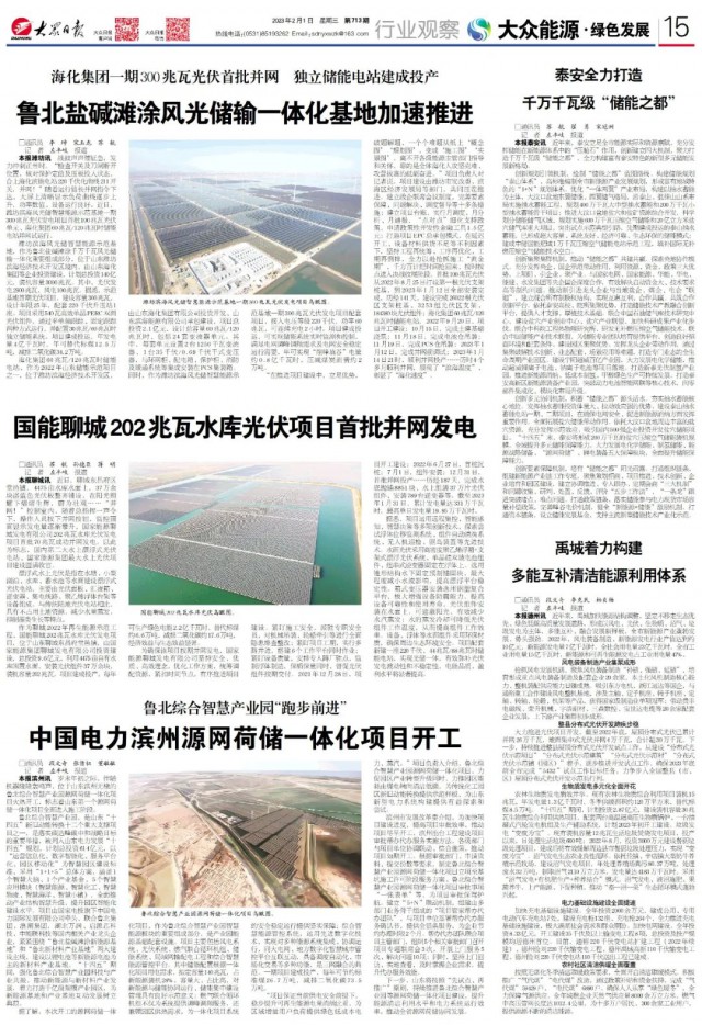 “在推進(jìn)項(xiàng)目建設(shè)中,立足優(yōu)勢,破題解題,一個個難題從紙上‘概念圖’‘規(guī)劃圖’,變成‘施工圖’‘實(shí)景圖’,離不開各級能源主管部門指導(dǎo)和關(guān)懷,靠的是全體海化人攻堅(jiān)克難、攻營拔寨的砥礪奮進(jìn)?!表?xiàng)目負(fù)責(zé)人對記者說,項(xiàng)目建設(shè)由濰坊市發(fā)改委、濱海區(qū)經(jīng)濟(jì)發(fā)展局等部門,共同壓茬推進(jìn)。建立政企聯(lián)席會議制度,完善要素保障、問題解決、調(diào)度督導(dǎo)等十多條措施;建立項(xiàng)目臺賬,實(shí)行月調(diào)度、月分析、月通報(bào),“點(diǎn)對點(diǎn)”細(xì)化支持政策,申請政策性開發(fā)性金融工具1.5億元;打造項(xiàng)目EPC總承包模式,在延遲開工、設(shè)備材料供貨不足等不利因素下,堅(jiān)持工程再統(tǒng)籌、工序再優(yōu)化、工期再倒排,全力以赴搶抓施工“黃金期”,千方百計(jì)把時間搶回來,按時按點(diǎn)進(jìn)入決戰(zhàn)收尾階段。首批100兆瓦光伏從2022年8月25日打設(shè)第一根光伏支架樁基,到2023年1月12日全部安裝完成,歷經(jīng)141天,建設(shè)完成26022根光伏區(qū)支架樁基、3253組光伏區(qū)支架、184380塊光伏組件;?;瘓F(tuán)60兆瓦/120兆瓦時儲能電站,2022年9月20日,項(xiàng)目開工建設(shè);10月15日,完成土建基礎(chǔ)澆筑;11月18日,完成電池倉吊裝;11月19日,完成PCS倉吊裝;2023年1月12日,完成并網(wǎng)前調(diào)試;2023年1月14日21時,順利并網(wǎng)投產(chǎn)……歷時4個多月順利并網(wǎng),展現(xiàn)了“濱海溫度”、彰顯了“海化速度”。