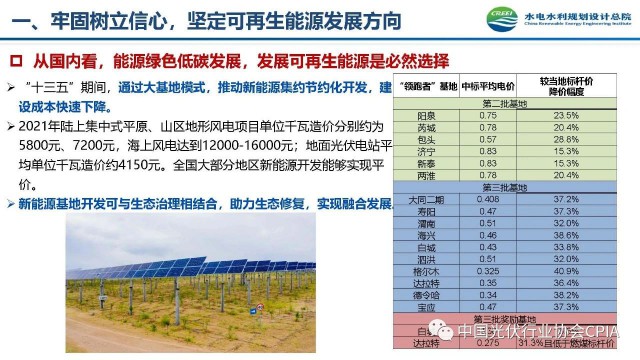2022年12月1日,由中國光伏行業(yè)協(xié)會主辦的2022中國光伏行業(yè)年度大會暨(滁州)光伏高質(zhì)量發(fā)展高峰論壇在安徽滁州成功召開。水電水利規(guī)劃設(shè)計(jì)總院新能源部副主任王躍峰作多措并舉促進(jìn)新能源大基地高質(zhì)量建設(shè)與發(fā)展的報(bào)告。王主任指出了新能源開發(fā)面臨的五點(diǎn)挑戰(zhàn),并提出了促進(jìn)新能源大基地高質(zhì)量發(fā)展的十條措施。