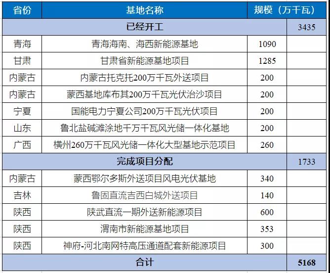 青海省10.9GW、甘肅省12.85GW、陜西省12.53GW、內蒙古自治區(qū)7.4GW、山東2GW、廣西2.6GW、吉林1.4GW。