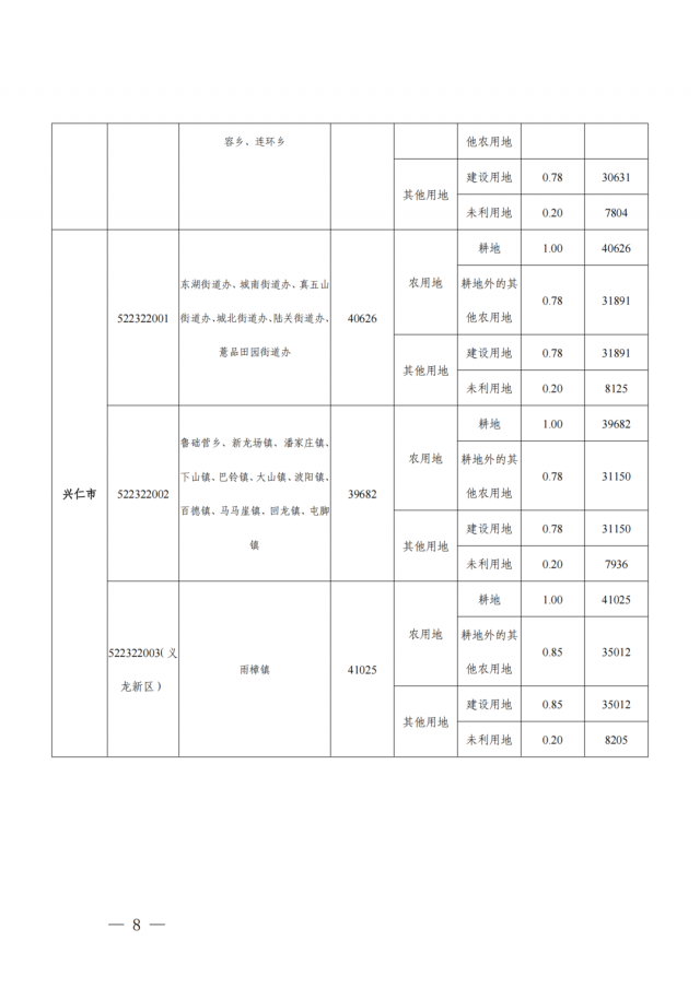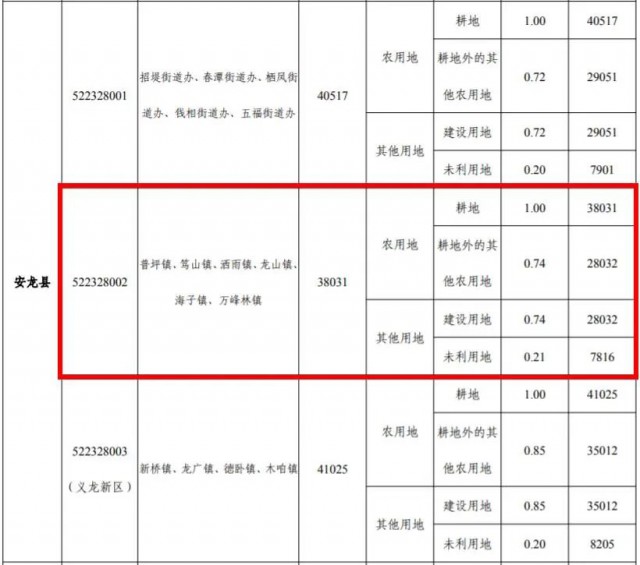 根據(jù)此前發(fā)布的《州人民政府關(guān)于公布實施黔西南州征地區(qū)片綜合地價補償更新標準的通知》(黔西南府函〔2020〕69號)補償標準,安龍縣普坪鎮(zhèn)區(qū)片綜合地價為38031元/畝,其中農(nóng)用地耕地補償標準為38031元/畝,耕地外的其他農(nóng)用地補償標準為28032元/畝。