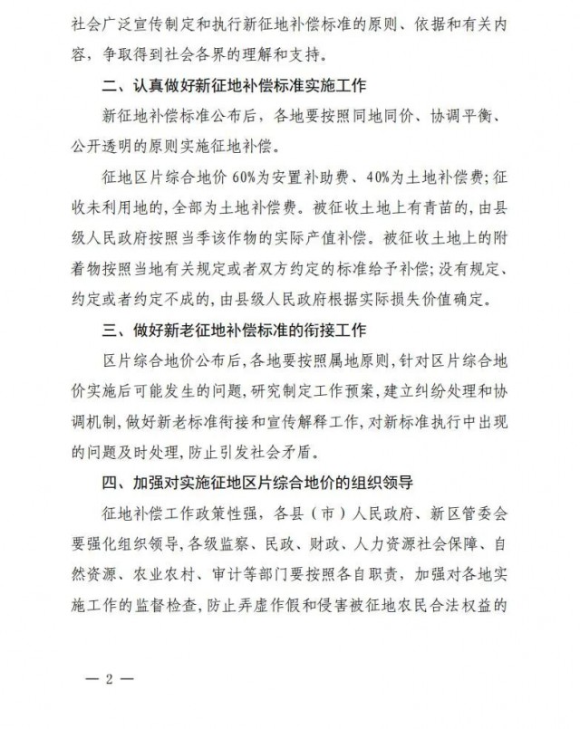 此外,根據(jù)黔西南州征地區(qū)片綜合地價補償更新標準,各地要按照同地同價、協(xié)調(diào)平衡、 公開透明的原則實施征地補償。征地區(qū)片綜合地價60%為安置補助費、40%為土地補償費;征 收未利用地的,全部為土地補償費。被征收土地上有青苗的,由縣級人民政府按照當季該作物的實際產(chǎn)值補償。被征收土地上的附著物按照當?shù)赜嘘P(guān)規(guī)定或者雙方約定的標準給予補償;沒有規(guī)定、 約定或者約定不成的,由縣級人民政府根據(jù)實際損失價值確定。