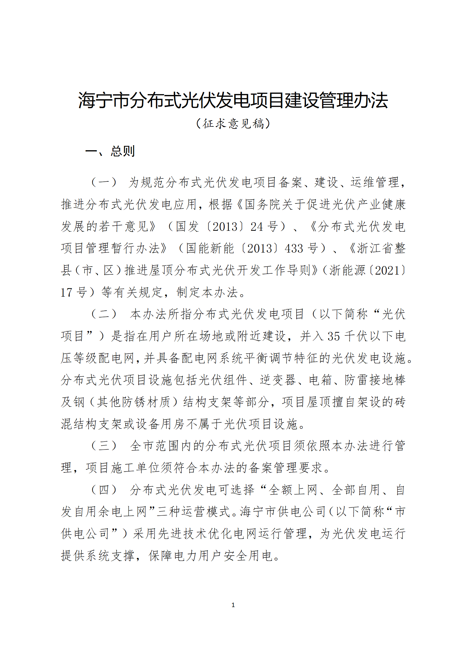 關(guān)于公開征求《海寧市分布式光伏發(fā)電項目建設(shè)管理辦法》(征求意見稿)意見的通知