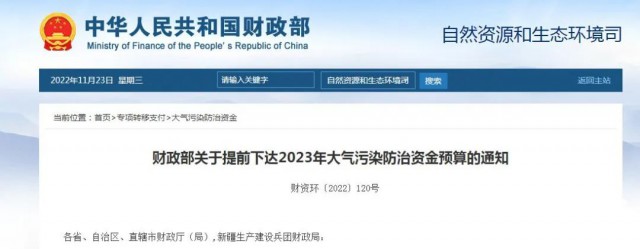 財(cái)政部關(guān)于提前下達(dá)2023年大氣污染防治資金預(yù)算的通知