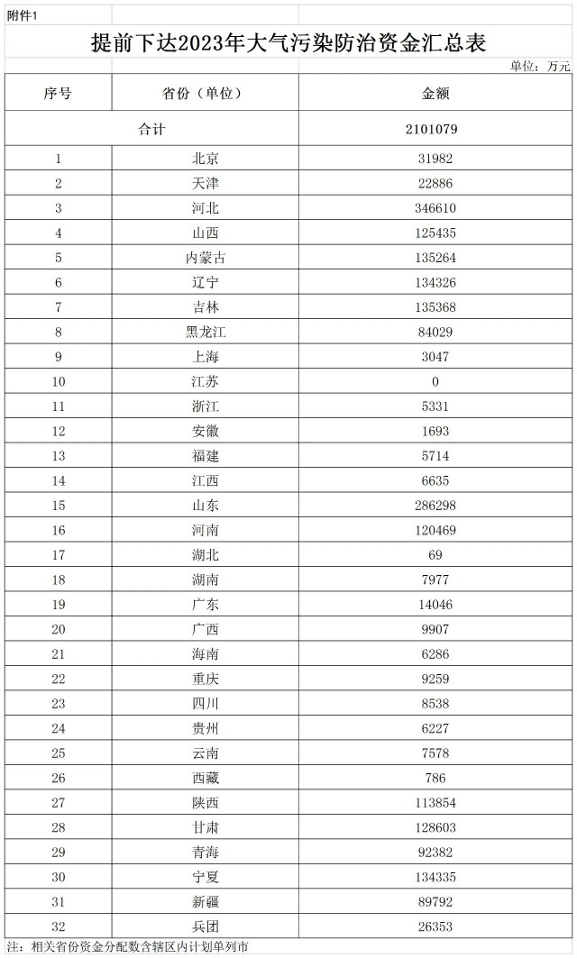 附件:1.提前下達(dá)2023年大氣污染防治資金匯總表